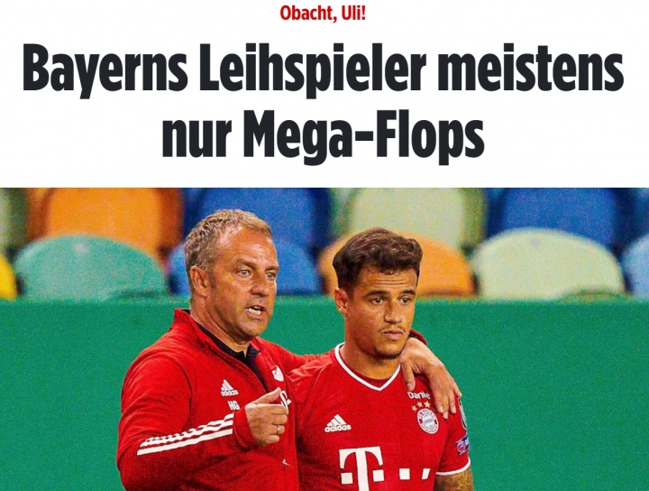 库蒂尼奥(33岁/2019年至2020年):他2019年夏天以850万欧元租借费从巴塞罗那加盟拜仁一年。他在38场比赛中打进11球,助攻9次,帮助球队赢得第二次三冠王。他在2019年12月对不莱梅的6:1比赛中帽子戏法并助攻两次,在欧冠四分之一决赛8:2大胜巴萨时也有两球入账。但整体表现不够耀眼,拜仁未行使买断权。
